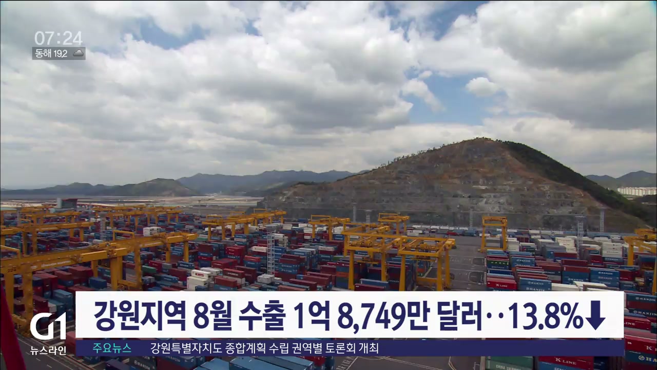 강원지역 8월 수출 1억 8,749만 달러..13.8%↓