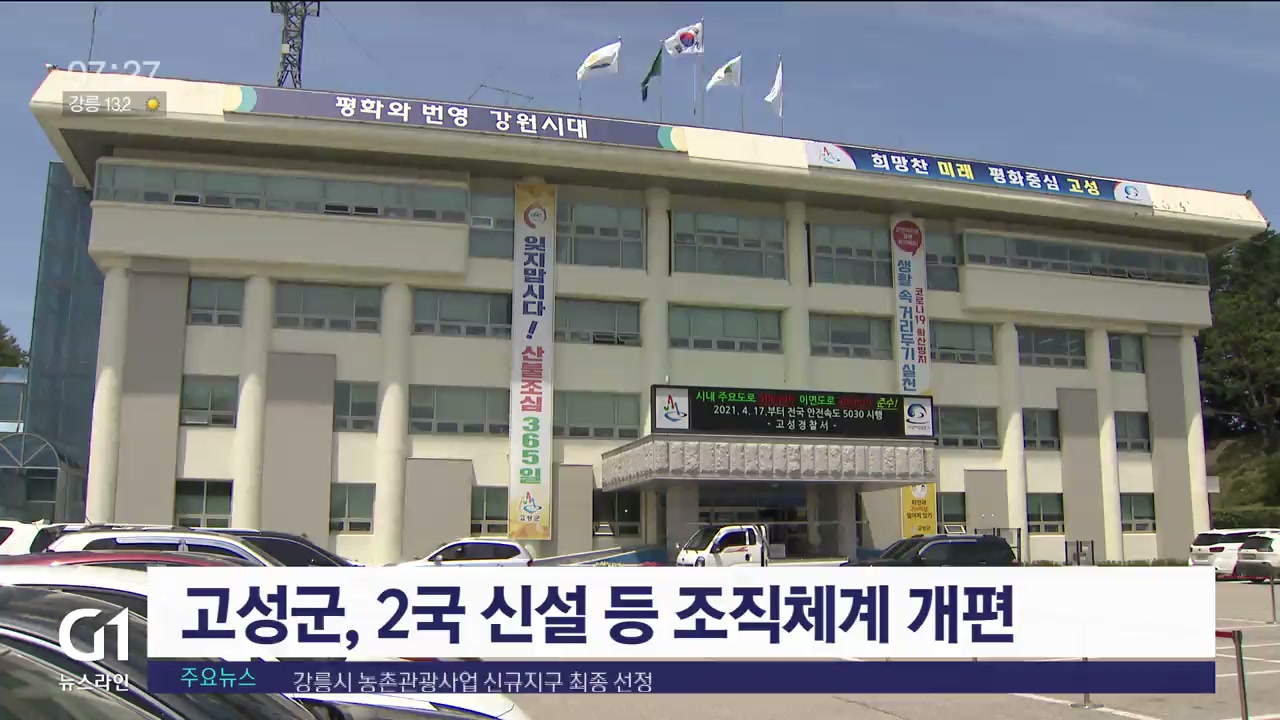 고성군은 새롭게 변하는 행정수요에 능동적으로 대응하고 의사결정의 신속성을 확보하기 위해 다음달에 조직체계를 개편합니다.
