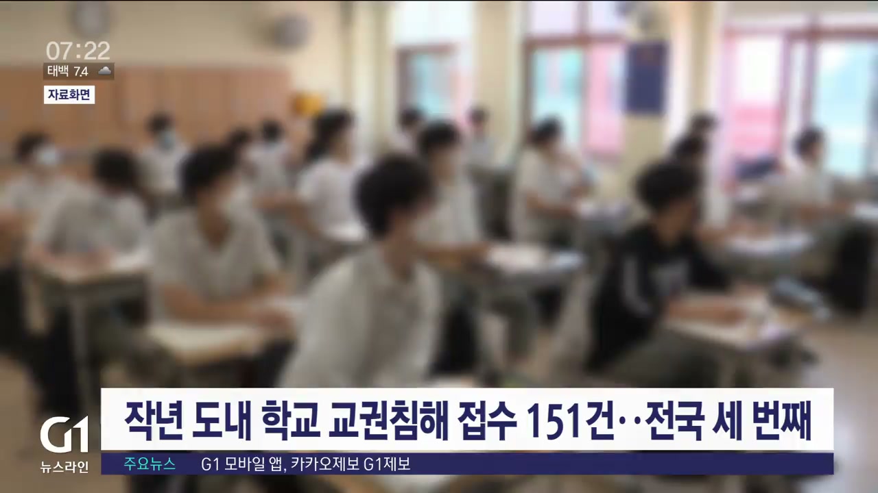 지난해 도내 학교 교권침해 접수 151건..전국 세번째