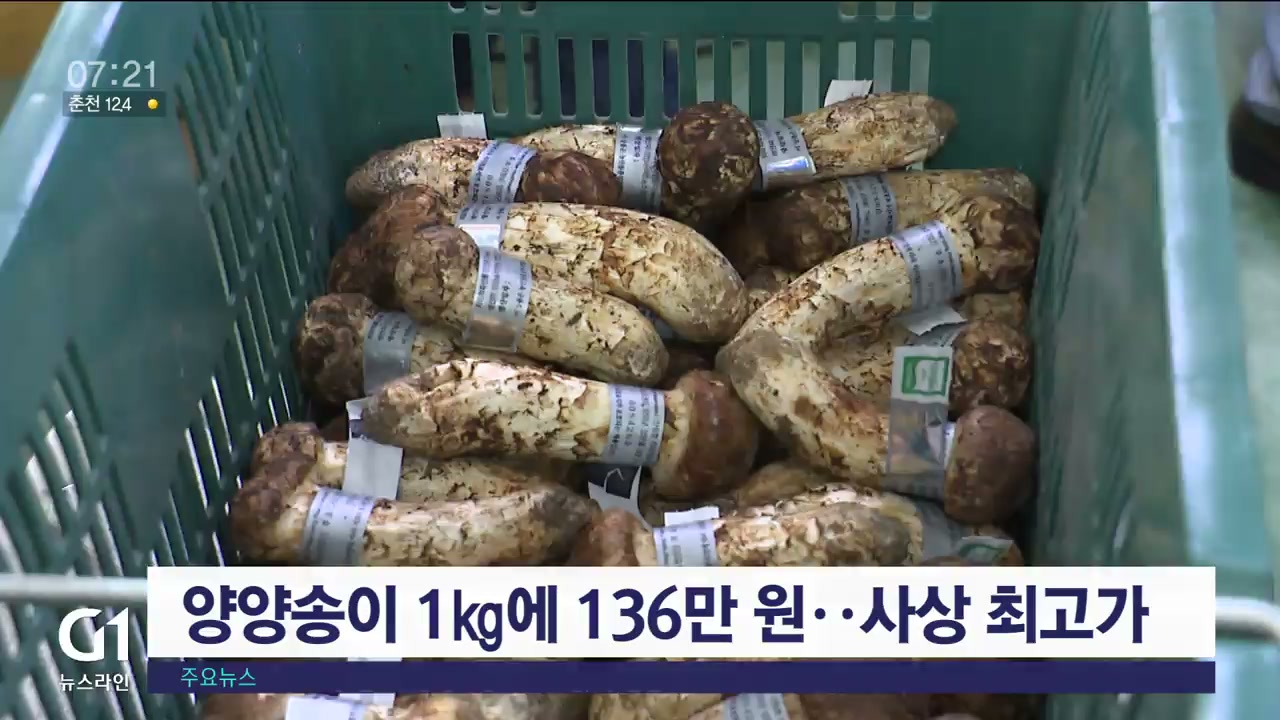 양양송이 가격이 사상 최고가를 기록하는 등 고공행진을 이어가고 있습니다.