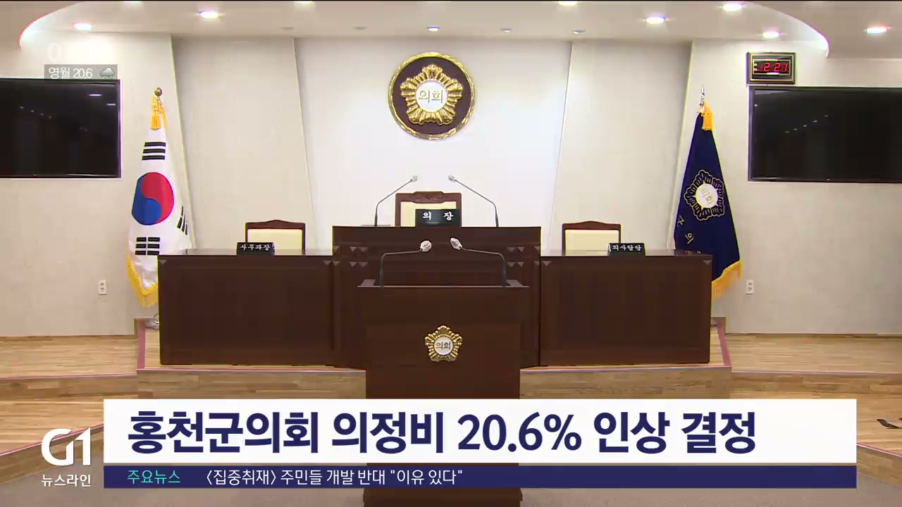 이에 따라 현재 3천 583만 원인 홍천군의원의 연간 의정비가 20.6% 오른 4천 320만 원으로 인상될 전망입니다.