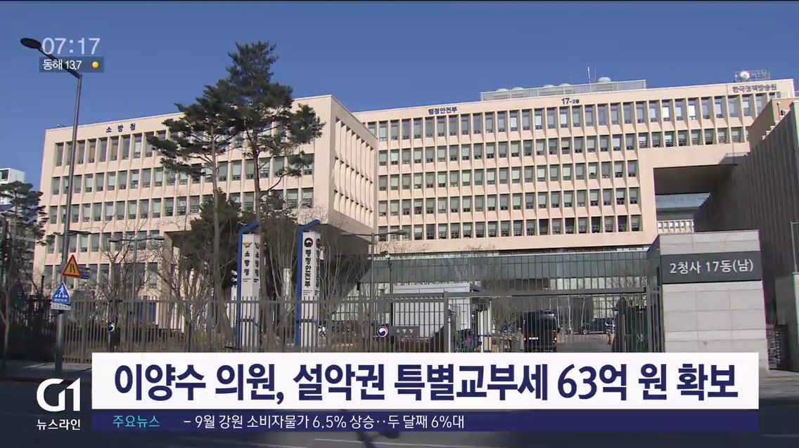 국민의힘 이양수 의원은 설악권 현안사업과 관련해, 행정안전부의 특별교부세 63억원을 확보했다고 밝혔습니다.