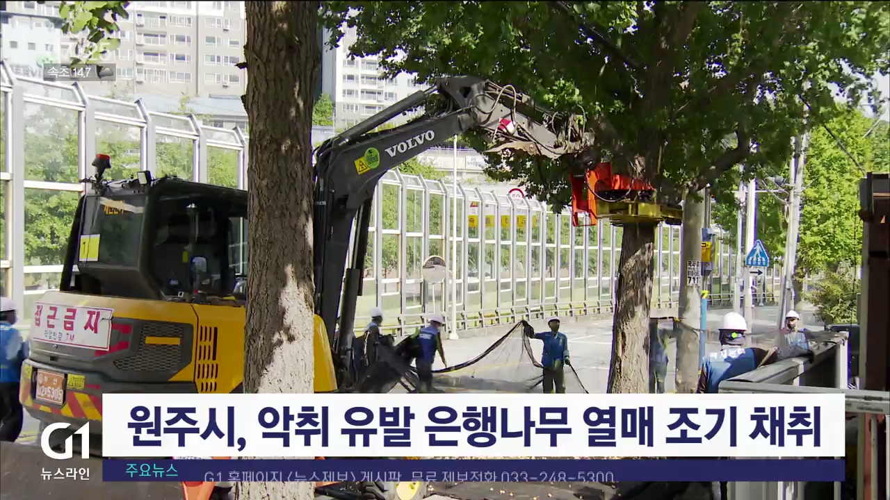 원주시, 악취 유발 은행나무 열매 조기 채취