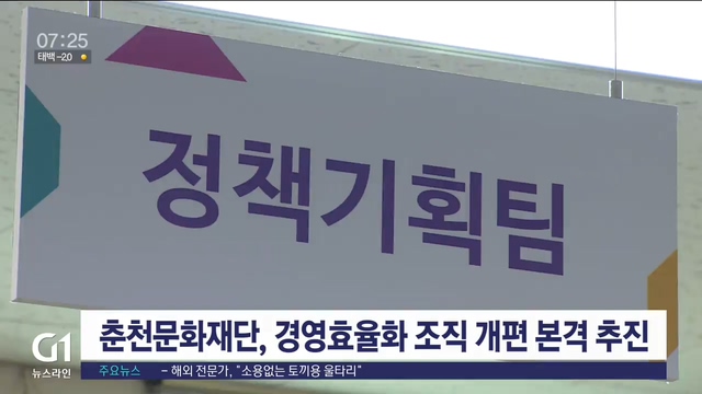 신임 최연호 춘천문화재단 이사장은 정례 브리핑을 통해 "춘천시에 제출한 자체 경영효율화 계획안에 따라, 기존 '1처 2본부 9팀'을 '3본부 9팀'으로 전환해 운영하겠다"고 밝혔습니다.