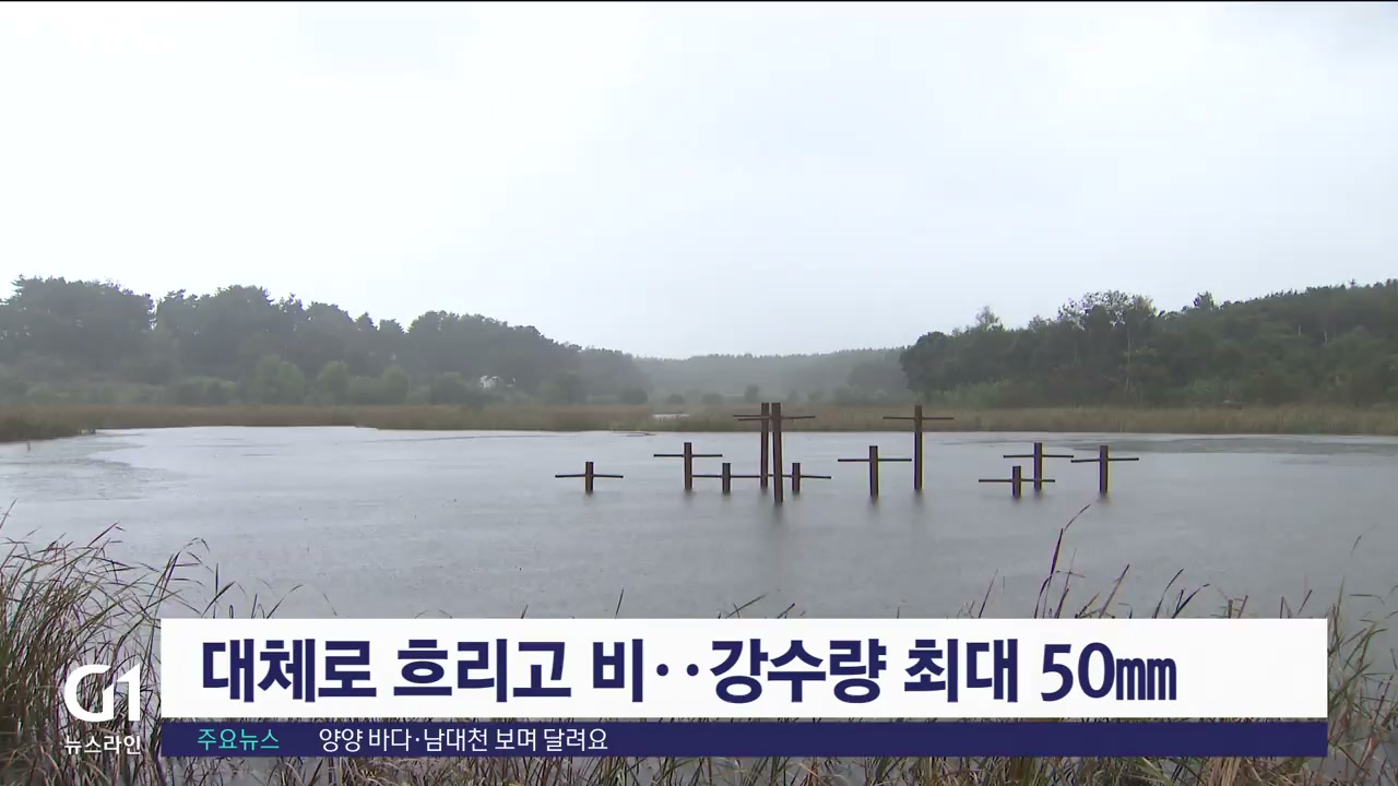 내일까지 비의 양은 영서권이 5mm 안팎, 영동권은 10mm에서 많게는 50mm로 예상됩니다.