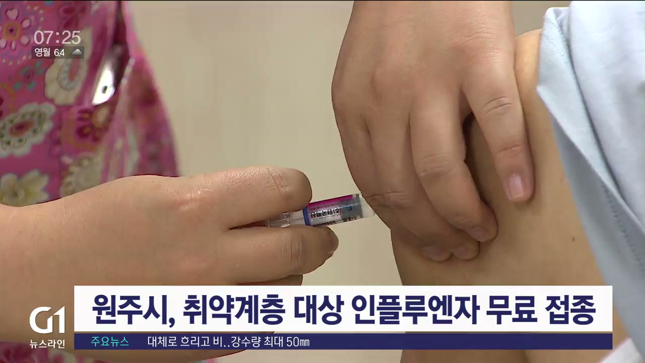 원주시가 오늘(24일)부터 만 64세 이하 취약계층을 대상으로 인플루엔자 무료 예방접종에 나섭니다.