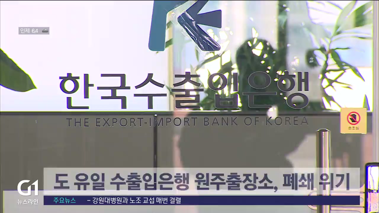 원주에 있는 도내 유일의 수출입은행 출장소가 또 폐쇄 대상에 올랐습니다.