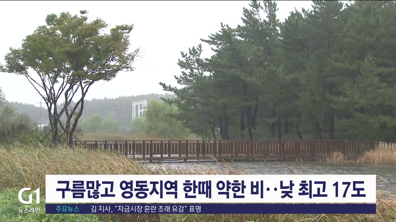 강원도는 오늘(25일) 구름이 많이 끼겠고 영동지역을 중심으로 아침 한 때 1mm 내외의 약한 비가 내리는 곳이 있겠습니다.