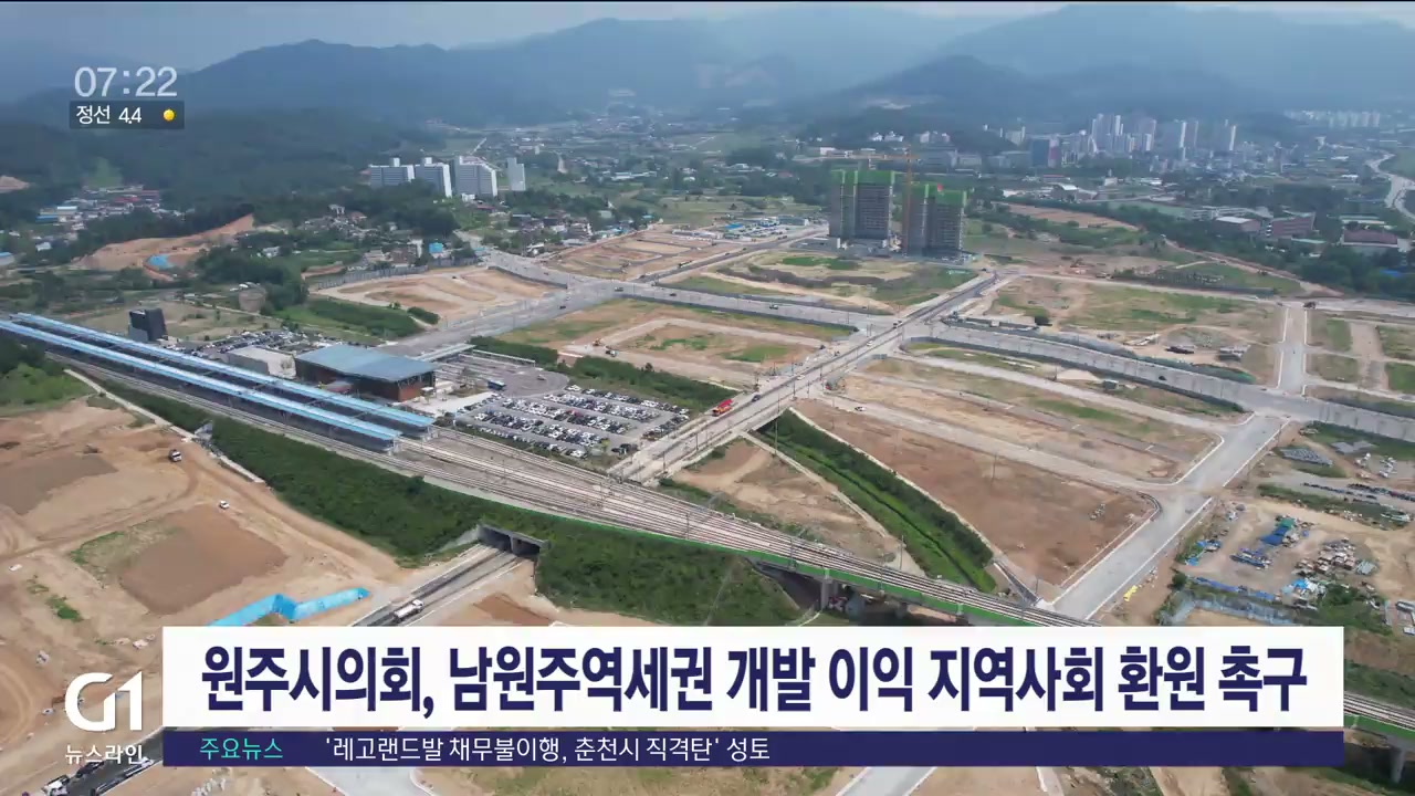 G1 방송이 연속 보도한 한국토지주택공사의 남원주역세권 개발 사업 땅 장사 논란과 관련해, 원주시의회가 개발이익에 대한 지역사회 환원을 촉구하고 나섰습니다.