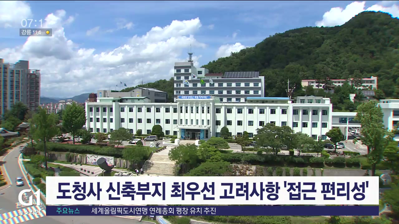강원도는 도청사 신축 시 가장 고려해야 할 사항으로 도민 41.0%가 '접근편리성'을 택했고, '비용 경제성' 17.0%, '장래확장성' 14.2% 등의 순이었다고 밝혔습니다.