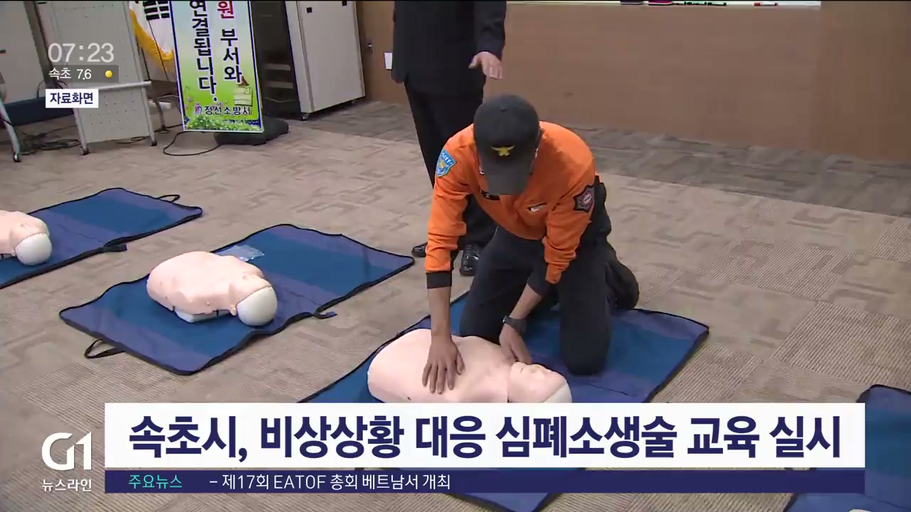 속초시는 속초소방서와 내일(7일) 시청 대회의실에서 직원 250여 명을 대상으로 심폐소생술 시범과 자동심장충격기 사용법 교육을 실시합니다.