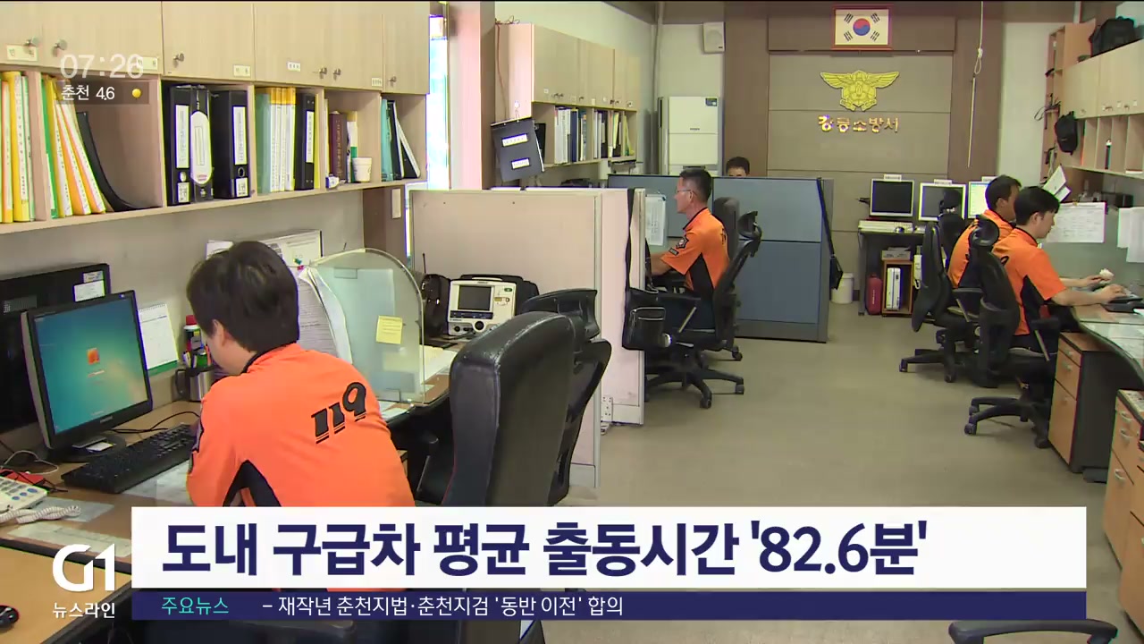 도 소방본부가 강원도의회 제출한 행정사무감사 자료를 보면, 올해 9월말 기준 구급차 평균 출동시간은 82.6분으로, 2021년 76.3분, 2020년 69.1분에 비교해 늘어났습니다.