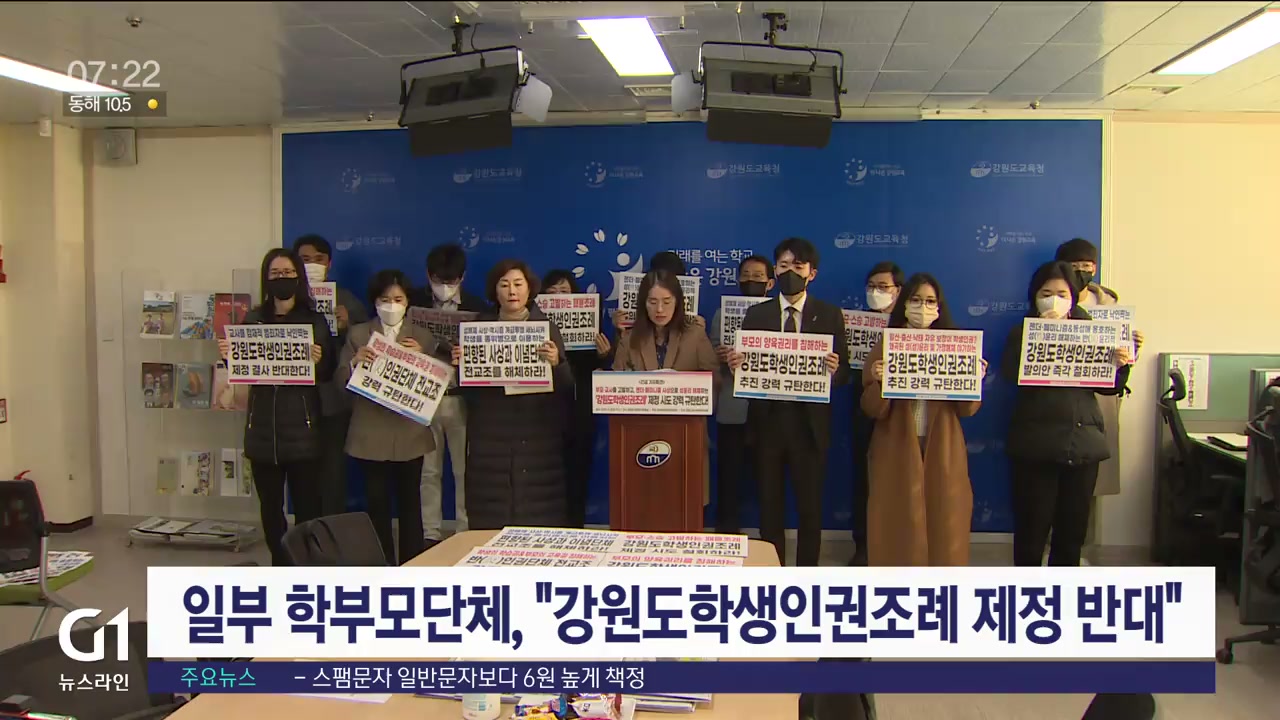 새싹부모회 강원지회 등 강원학부모단체연합회는 어제(8일) 도교육청에서 기자회견을 열고 '강원도학생인권조례' 제정 시도를 규탄한다고 밝혔습니다.