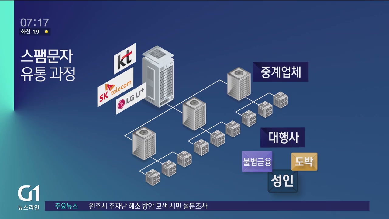 이동통신사 3사가 문자 중계 업체에 통신망을 임대해 주면, 업체가 문자 전송 대행사들에게 통신망을 재 임대해 주는 구조입니다.