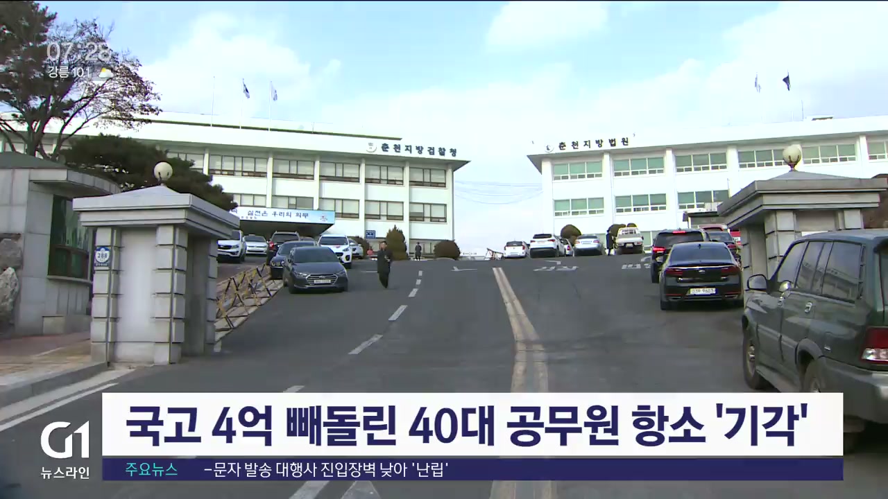 A 씨는 횡성군청 소속 면사무소에 근무하며, 지난 2020년부터 지난해까지 44차례에 걸쳐 3억 9천900만 원에 달하는 공금을 빼돌린 혐의로 기소됐습니다.
