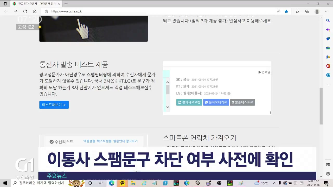 소개받아 들어간 사이트에는 '통신사의 스팸 문구 차단에 걸리는지 여부를 미리 확인해 준다'는 내용도 버젓이 안내돼 있습니다.