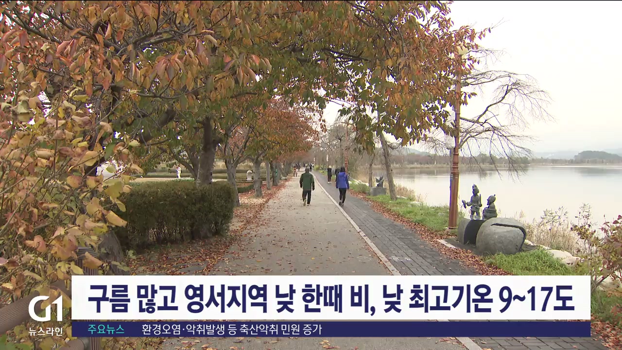 구름 많고 영서지역 낮 한때 비, 낮 최고기온 9~17도