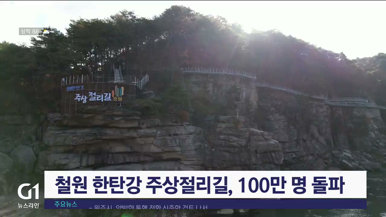 철원의 관광명소인 한탄강 주상절리길이 개통 1년 만에 누적 방문객 100만 명을 돌파했습니다.