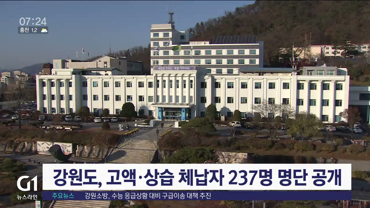 강원도가 1년 넘게 천 만원 이상 지방세와 지방행정제재, 부과금 등을 내지 않은 고액·상습 체납자 237명의 명단을 공개했습니다.