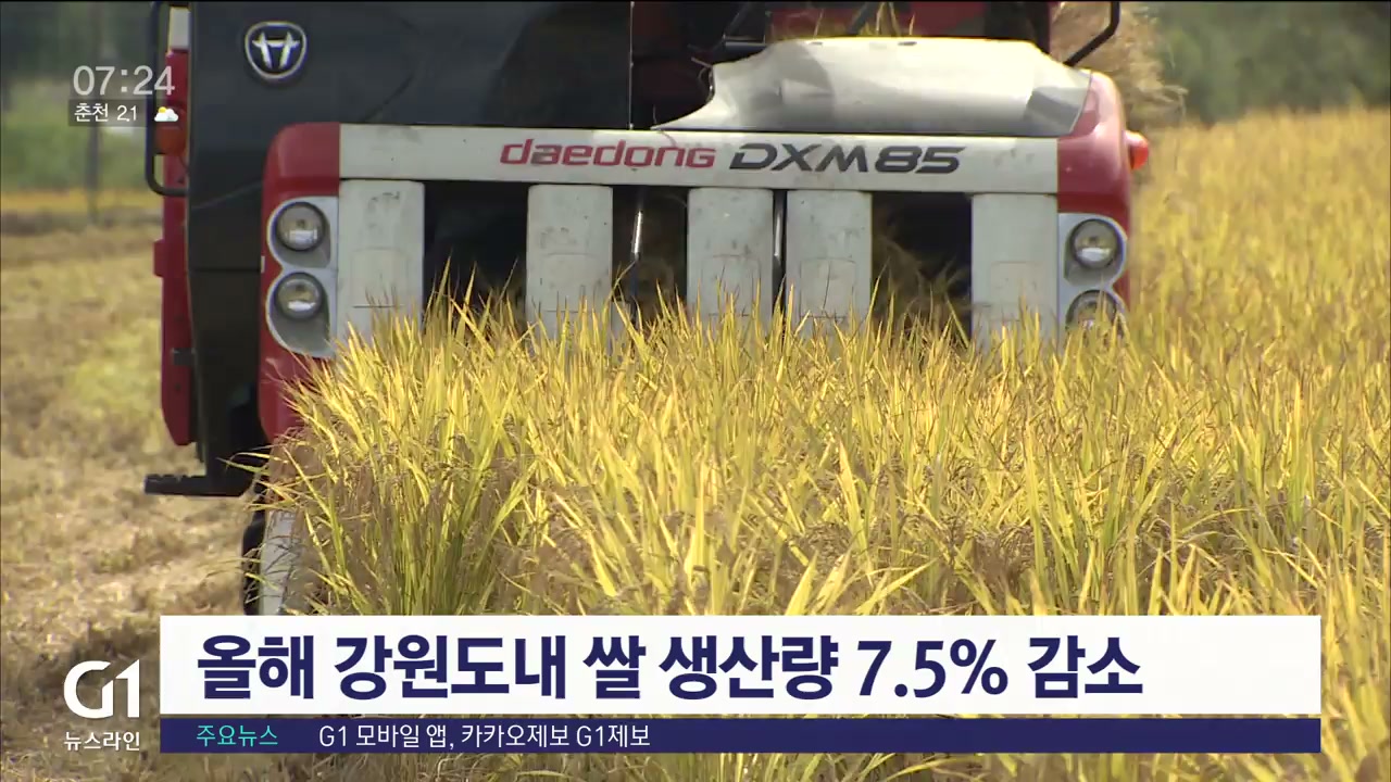 올해 강원도내 쌀 생산량 7.5% 감소