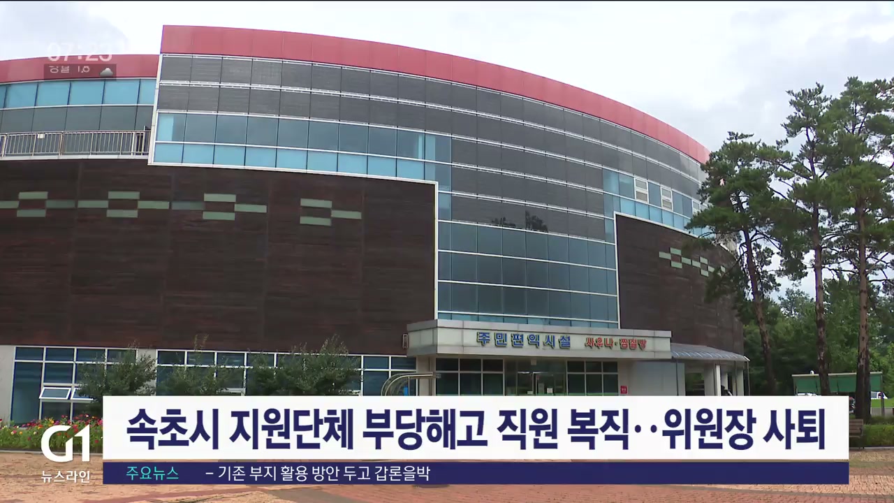 G1뉴스에서 보도한 속초시 예산 지원단체 직원의 부당해고와 친인척 채용과 관련해, 부당해고된 직원이 복직됐습니다.