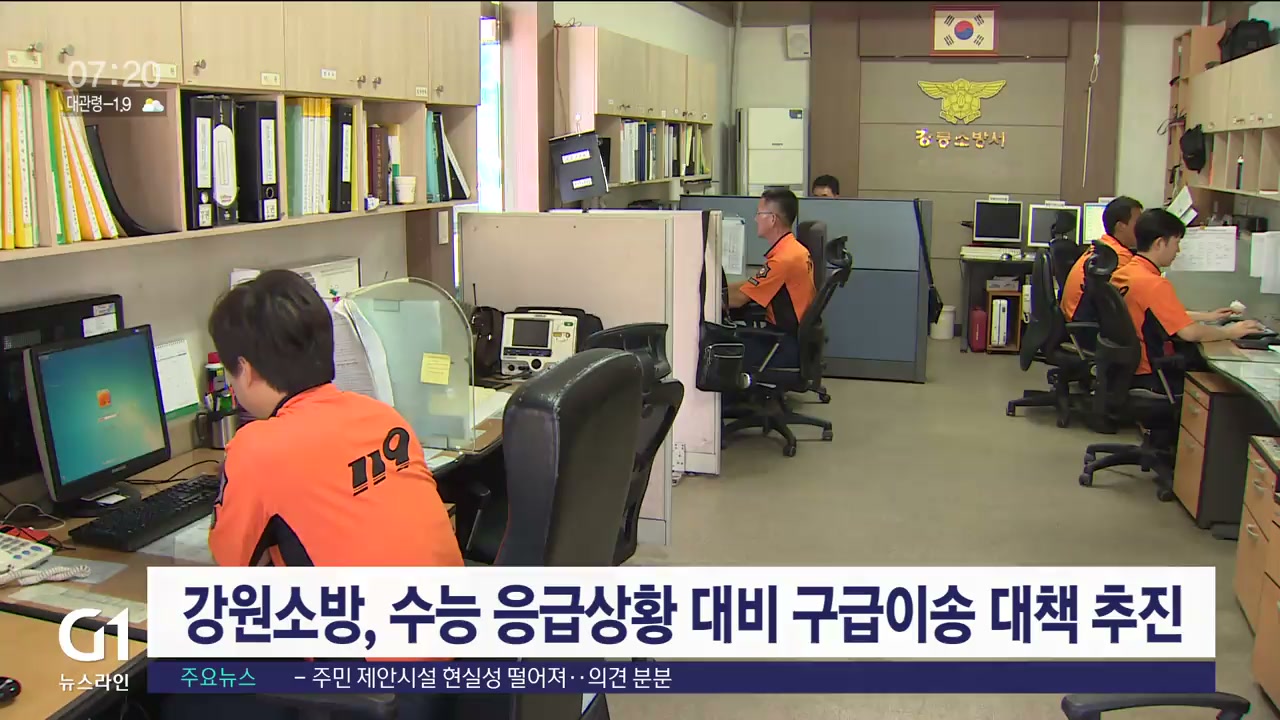 강원소방은 대학수학능력시험에 대비해 119구급 이송 대책을 추진합니다.