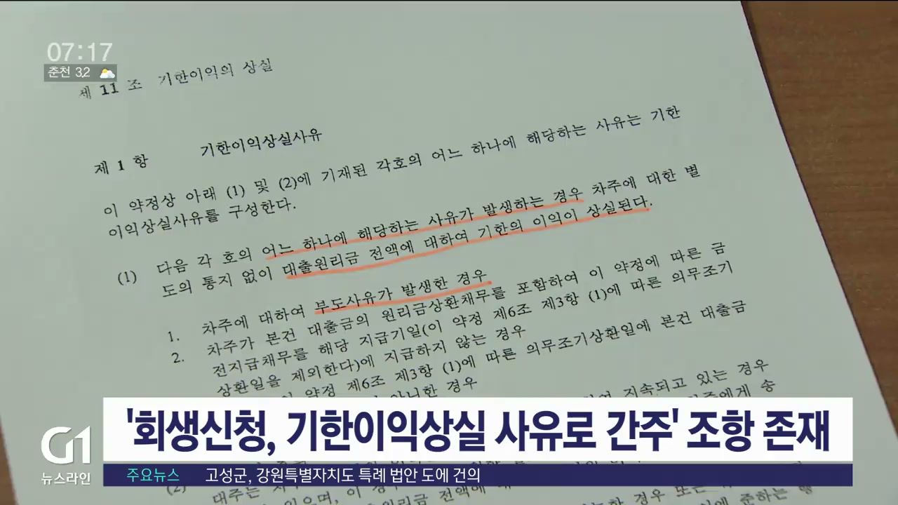 '회생신청 기한이익상실 사유로 간주' 조항 존재