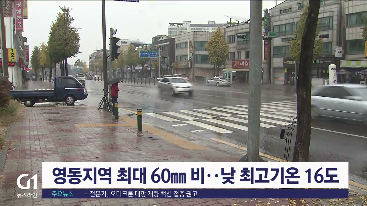 영동지역 최대 60㎜ 비..낮 최고기온 16도