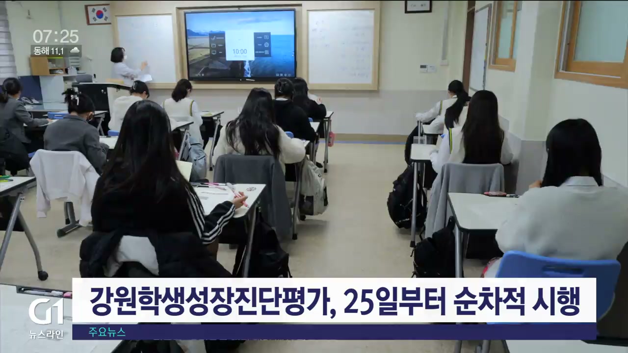 강원도교육청이 역점적으로 추진하는 강원학생성장 진단평가가 다음달(12월) 2일까지 도내 학교별 일정에 따라 진행됩니다.