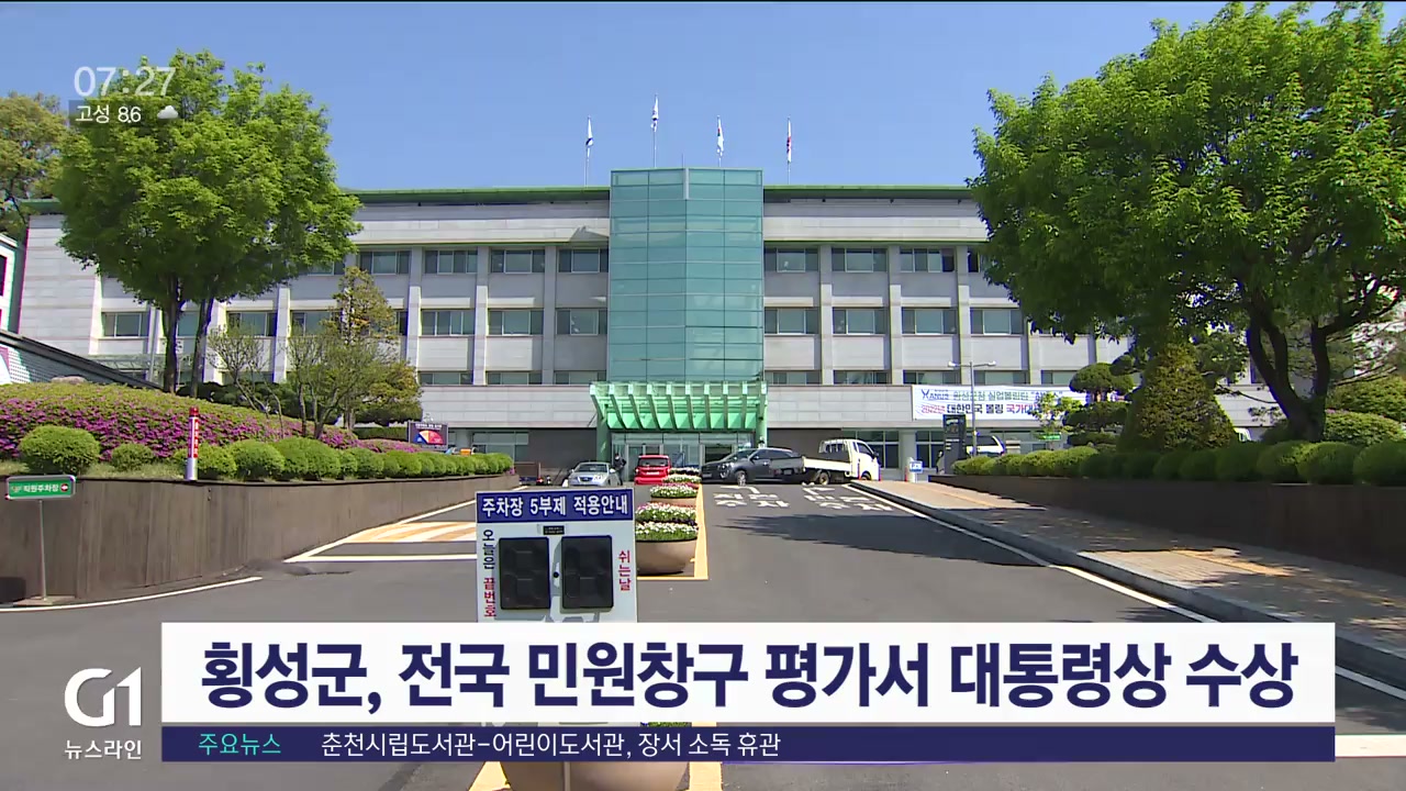 횡성군이 행정안전부가 주관한 '전국 원스톱방문 민원창구 우수기관 평가'에서 대통령상을 수상했습니다.