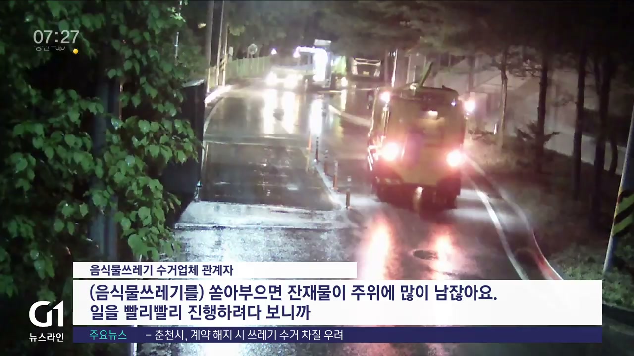 음식물쓰레기 수거에 차질을 지적하고 있습니다./