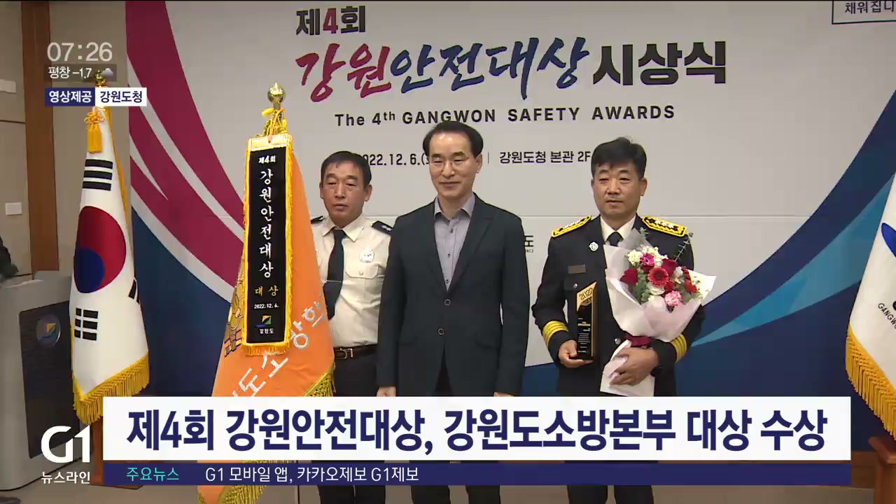 강원도가 개최한 제4회 강원안전대상에서 강원도 소방본부가 대상을 수상했습니다.