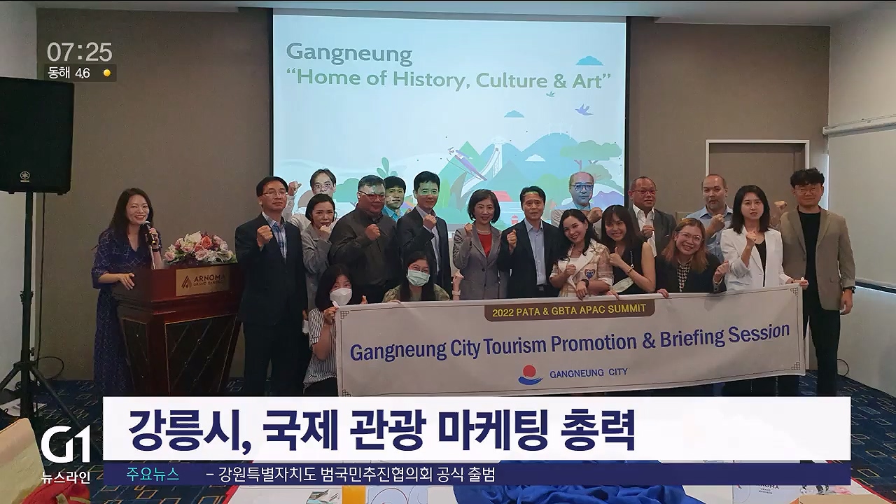 강릉시는 내일(9일)까지 방콕에서 아시아태평양관광협회와 국제비지니스 관광협회가 주최하는 아태지역 여행 정상회담 총회와 포럼에 참가해 강릉 관광을 집중 홍보합니다.