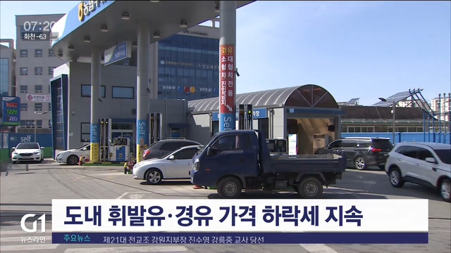 국제유가가 떨어지면서 도내 주유소의 평균 휘발유와 경유 가격이 하락세를 보이고 있습니다.