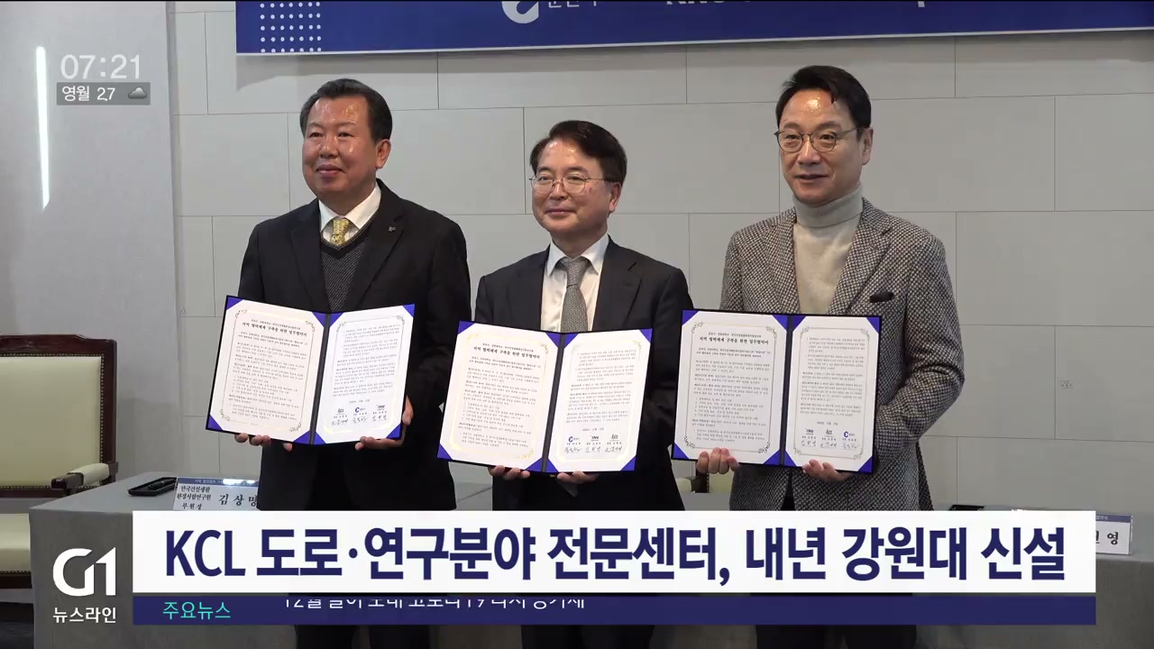 KCL 도로·연구분야 전문센터, 내년 강원대 신설