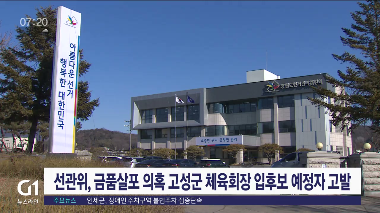 선거관리위원회가 선거인에게 금품을 제공한 고성군 체육회장 입후보 예정자 A씨를 경찰에 고발했습니다.