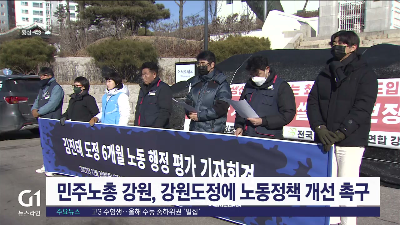 민주노총 강원지역본부가 김진태 도지사 취임 6개월을 맞아 노동정책 개선을 촉구하는 기자회견을 열었습니다.