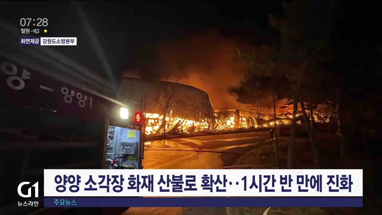 양양 소각장 화재 산불로 확산..1시간 반만에 진화