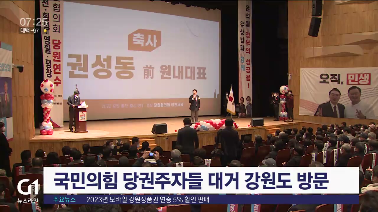 김기현·안철수·권성동·윤상현 의원 등은 원주와 횡성에서 각각 열린 원주갑, 홍천·횡성·영월·평창 당협위원회의 당원 연수에 나란히 참석해 당원들의 표심을 공략했습니다.