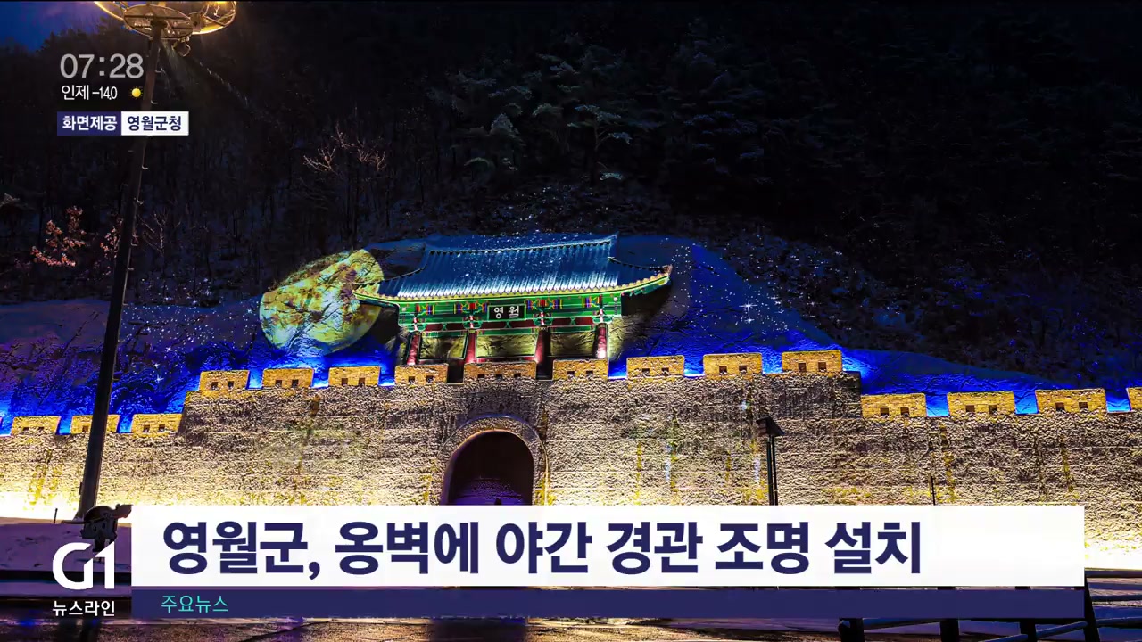 야간 경관 조성 사업은 기존의 콘크리트 옹벽을 옛 성곽 형태로 만들어 관광객에게 볼거리를 제공하고, 영월의 랜드마크를 만들기 위해 진행됐습니다.