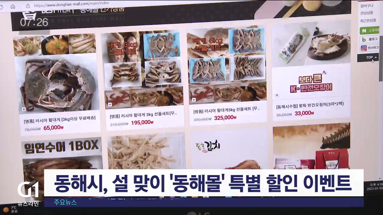 동해시가 지역 특산물을 판매하는 온라인 쇼핑몰 '동해몰'에서 설 맞이 할인 이벤트를 벌입니다.
