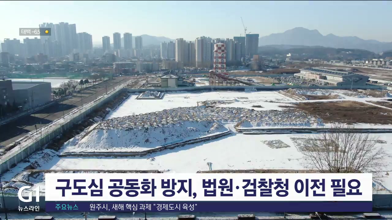 "도청사 신축 부지 선정에서 탈락한 옛 캠프페이지 일대에 이전 추진 중인 법원·검찰청을 유치하자는 주장이 제기되고 있습니다."