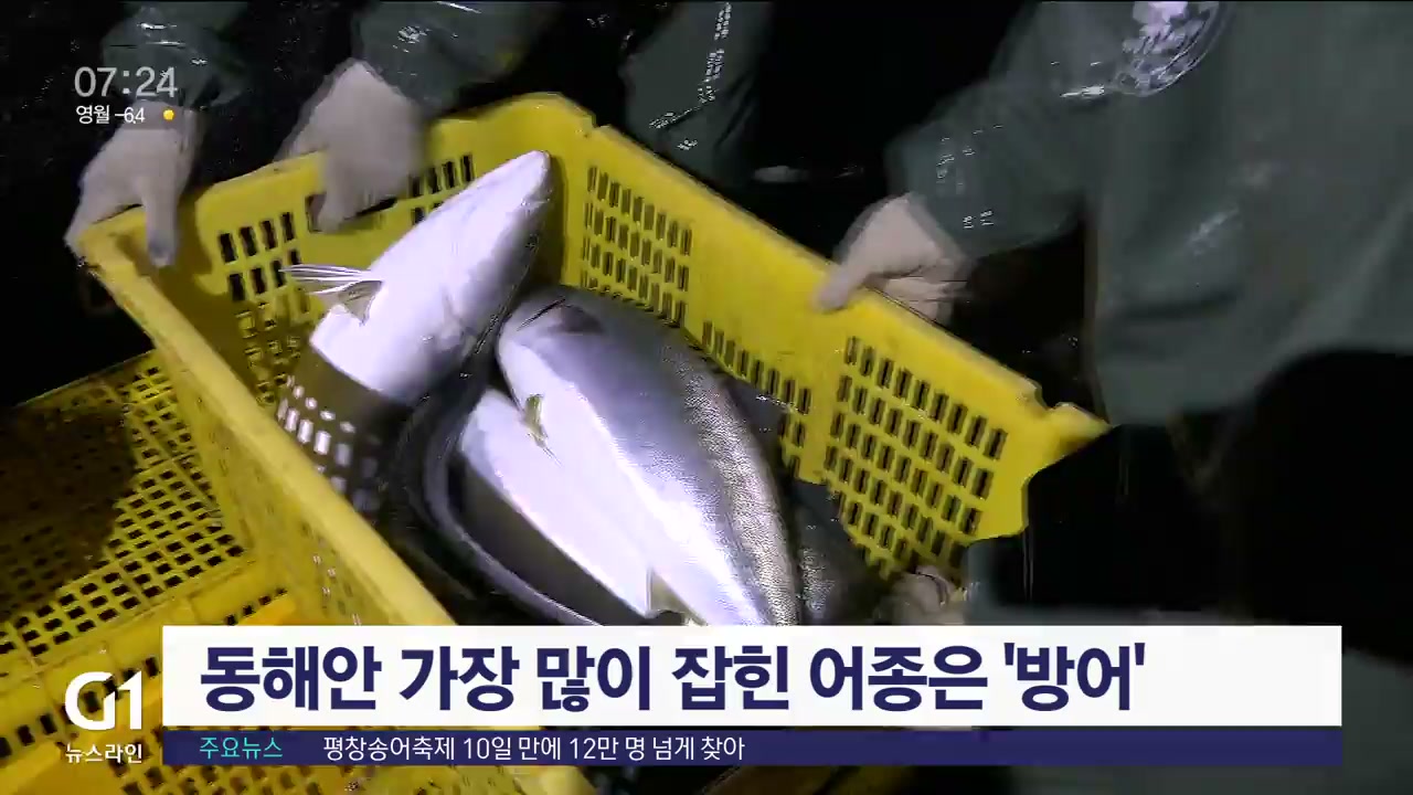 지난해 도내 동해안에서 가장 많이 잡힌 어종은 방어인 것으로 나타났습니다.