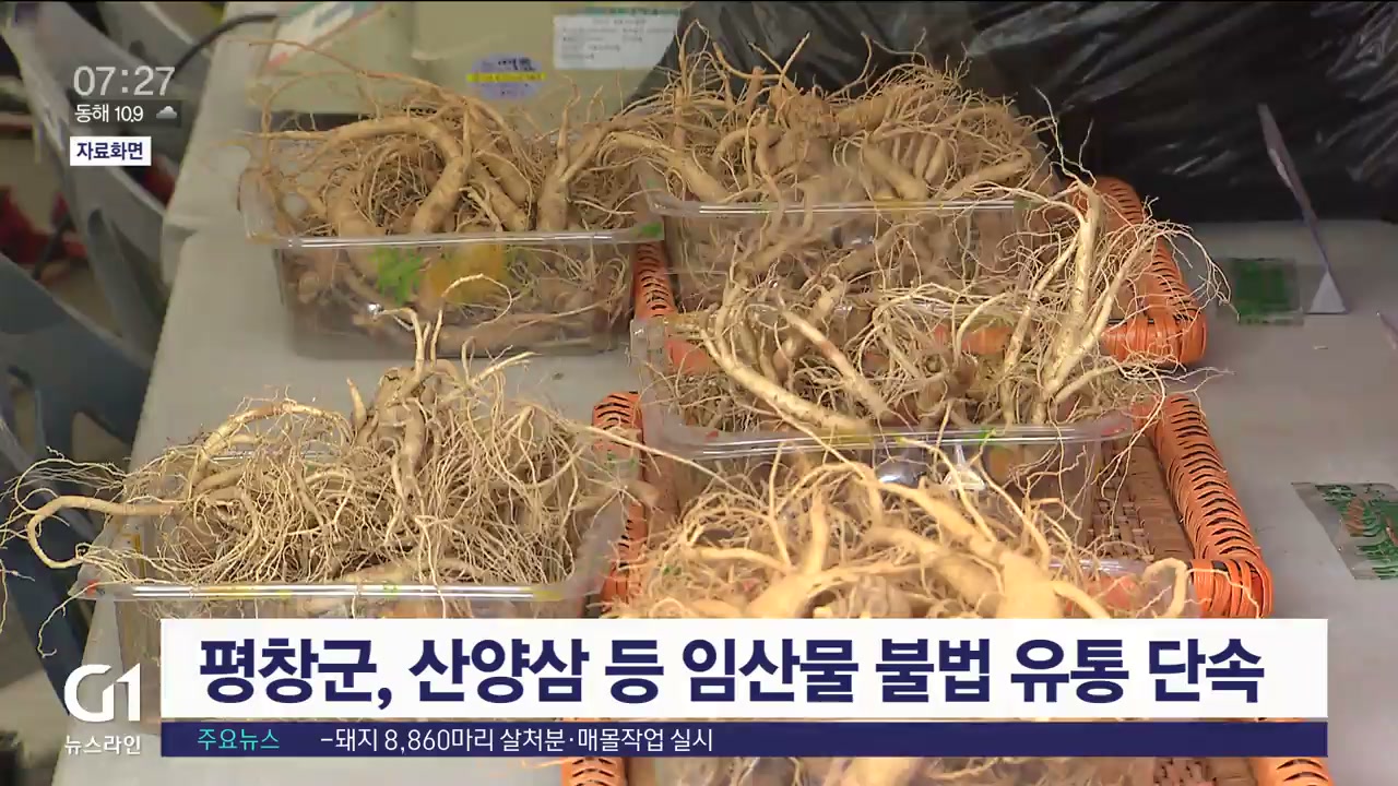 평창군이 오는 20일까지 산양삼과 밤 등 임산물 유통판매에 대한 집중단속을 벌입니다.