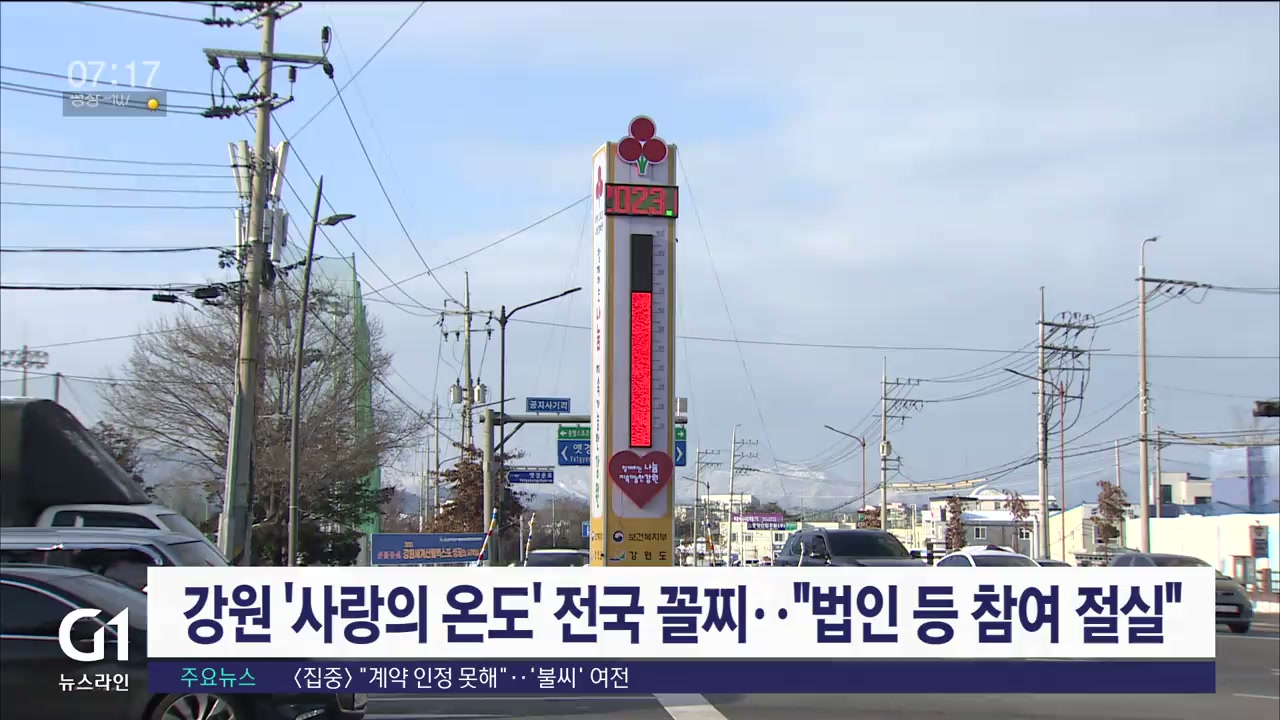 강원 '사랑의 온도' 전국 꼴찌.."법인 등 참여 절실"