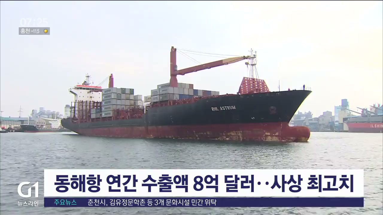 동해항 연간 수출액 8억 달러..사상 최고치