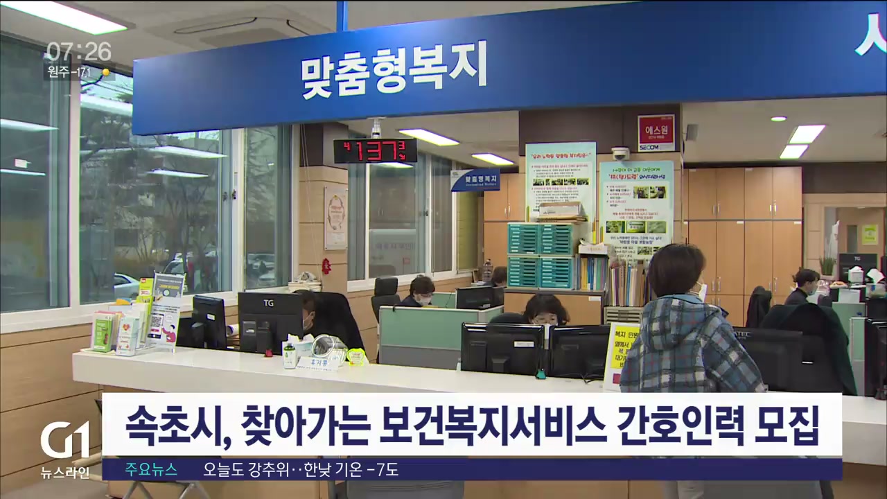 속초시는 의료 취약계층에 찾아가는 보건복지 서비스를 제공하기 위한 간호 인력을 모집합니다.