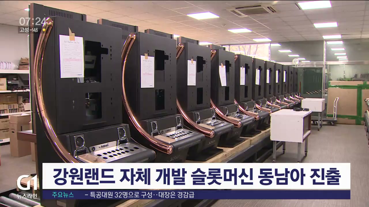 "그간 슬롯머신을 해외에서 들여오던 강원랜드가, 자체 제조에 뛰어든 지난 2017년 이후 6년 만의 첫 해외 정식 판매입니다."