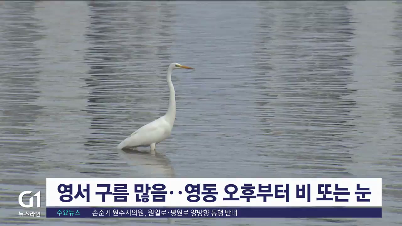 오늘 영서지역은 대체로 구름이 많이 끼겠고, 영동지역은 오후부터 비나 눈이 내리는 곳이 있겠습니다.