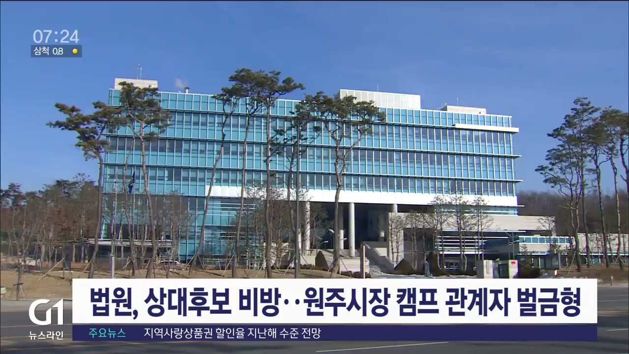6·1 지방선거를 앞두고 상대 후보를 비방하는 내용을 담은 보도자료를 배포한 원강수 원주시장 후보자 측 캠프 관계자에게 벌금형이 선고됐습니다.